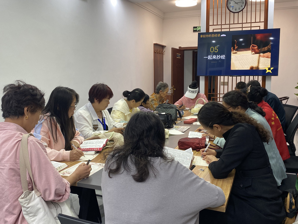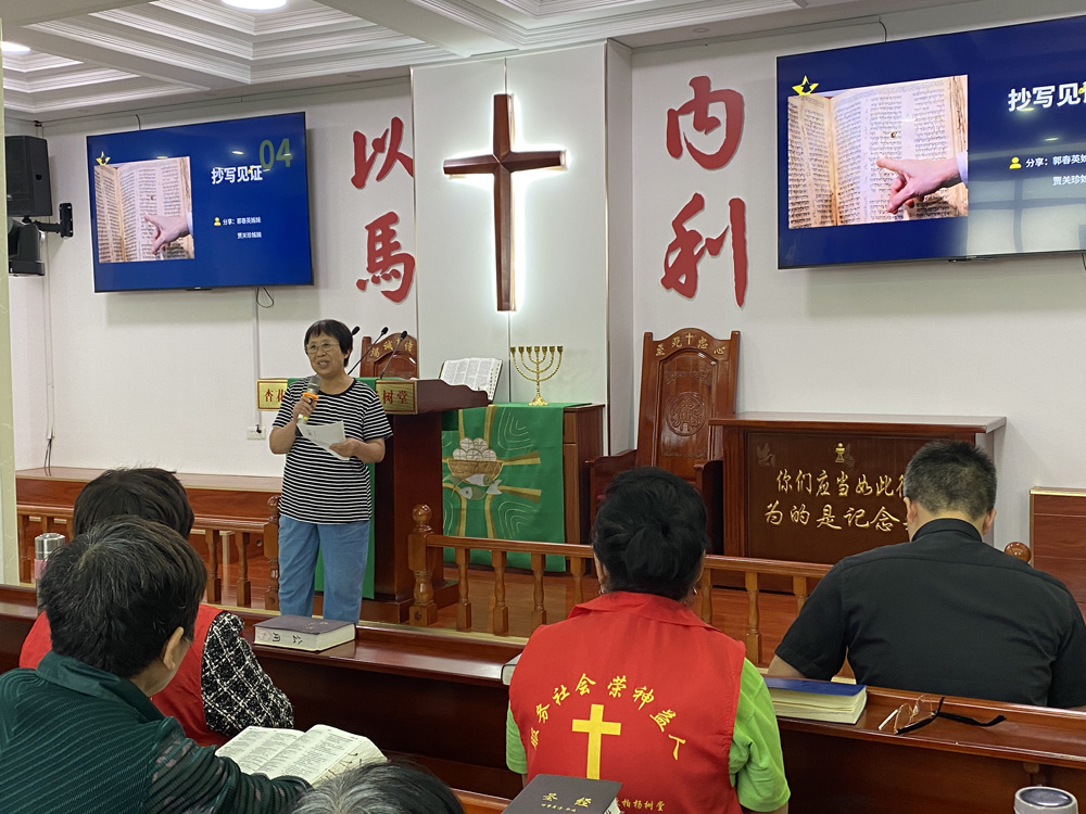 见证环节,贾关珍姊妹和郭春英姊妹分享她们抄经的经历和心得,不仅加深了对圣经的认识和理解,也提高了听道的能力和灵性,极大激励了在场会众。随后,每位参与者领取了预备好的纸笔,认真抄写自己喜爱的经文,在静默中体会神话语的甘甜。