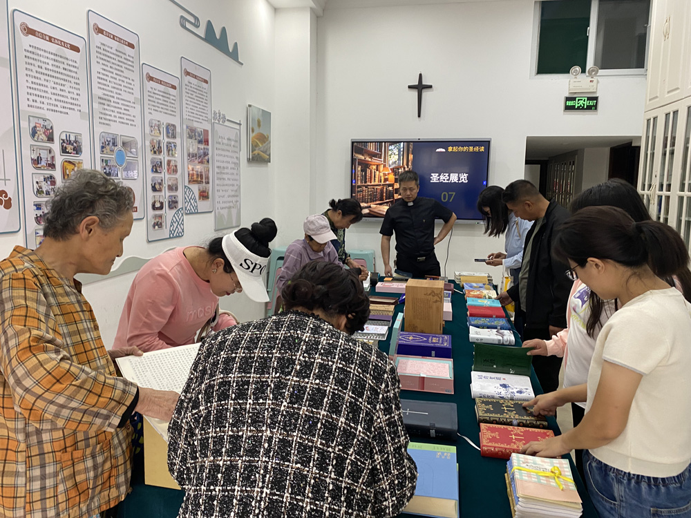 活动最后,现场展出了不同版本和装帧精美的圣经,包括希伯来文旧约圣经,希腊文新约圣经,中英对照圣经,当代中文译本圣经,浅文理圣经等不同语言和译本的圣经,以及适合不同年龄、不同场景、不同对象,满足不同功能的圣经,使大家不仅了解到中国教会圣经出版事工的工作,更切身体会到圣经不仅内容神圣宝贵,装帧印制更是精妙绝伦,让人爱不释手。郭春英、贾关珍、杨巧萍、赵变娥等姊妹将自己抄写的部分经卷或整套圣经也带来进行了展示,极大的激发了大家抄写圣经的热情。