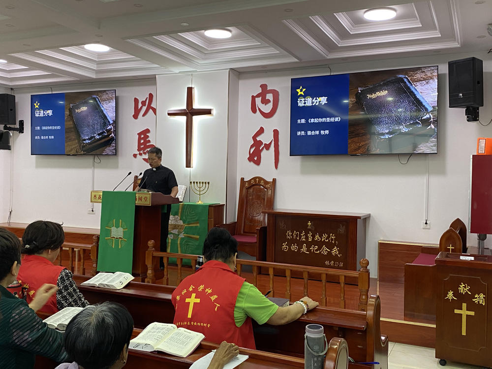 随后,骆牧师介绍了中国教会圣经日的背景、爱德印刷厂的建立与圣经的印刷事工,使大家认识圣经无论是印制或装帧都精美珍贵,鼓励大家要珍爱圣经、阅读圣经、抄写圣经。